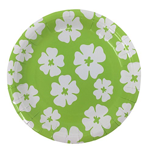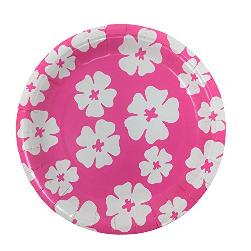 -. Feature : Luau Party Supplies Bundle for 16, 4 Items: / 16 Count Sturdy Disposable Paper Dessert Plates, 8 Pink and 8 Lime Green Featuring a White Hibiscus Pattern (7 Inch Round) / 16 Count Package of Pink Paper Beverage Napkins (9.88 Inch by 9.88 Inch) / 48 Count Yellow Plastic Cutlery Set with 16 Each of Spoons, Forks and Knives / 1 Count Tissue Paper Pineapple Table Decoration, 12 Inches Tall