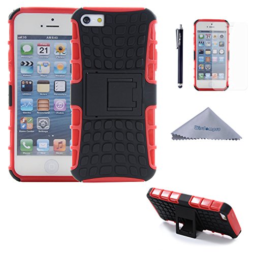 -. Title : iPhone SE 5s 5 Case, Wisdompro [2 Piece in 1] Dual Layers [Heavy Duty] Hard Soft Hybrid Red Protective Case with [Foldable Kickstand] for Apple iPhone 5/5s/SE