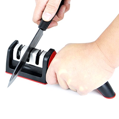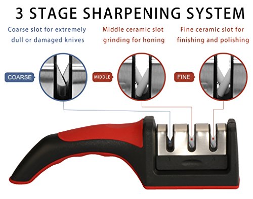 With the Kitchen Saviors Knife Sharpener, sharpening and salvaging your dull knives and bringing less-than-perfect-blades