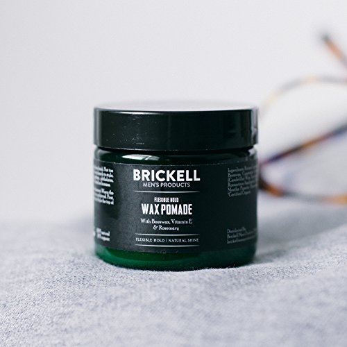 -. Feature : What It Does: This lightweight, natural wax hair pomade for men provides a flexible hold with a natural shine finish. / Who It's For: Men of any age with medium to short hair who want a flexible style with a natural shine. Works with any hair type. / How It Works: Beeswax in this men's hair pomade provides a flexible hold, while Vitamin E conditions the hair, and Castor Oil promotes hair growth. / Key Ingredients: Natural & Certified Organic ingredients, including: Beeswax, Vitamin E, Shea Butter. 100% natural, 81% organic. / Who We Are: Brickell creates skincare and grooming products for men using natural & certified organic ingredients. Our products are sold in over 20 countries and have appeared in GQ, Men's Health, Men's Journal, and other popular men's magazines.
