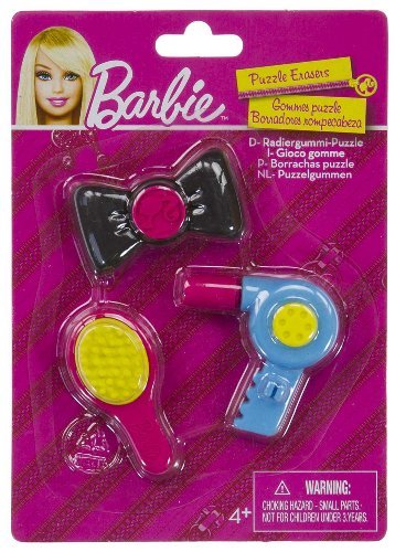 ()/Arts Crafts/Pencils Erasers/DIRECT FROM USA/Bow, Comb, Hair Dryer (3 Mini-Erasers) - Barbie Collectible Puzzle Erasers Series #1