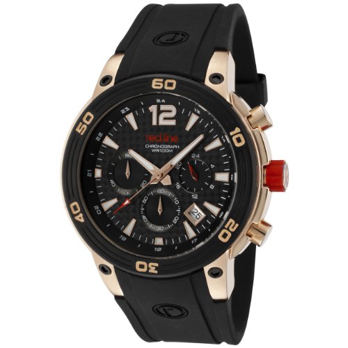 -. Binding : Watch -. Brand : red line -. Color : Black -. Department : mens -. EAN : 0722631264827 -. Feature : Japanese quartz movement / Mineral crystal; polished rose gold ion-plated stainless steel case; black silicone strap / Chronograph functions with 60 second, 60 minute and 24 hour subdials; date function / Black carbon fiber dial with rose gold tone hands and hour markers; luminous; black unidirectional bezel; rose gold stainless steel crown with red accent / Water resistant to 330 feet (100 M): suitable for snorkeling, as well as swimming, but not diving -. Label : red line -. Manufacturer : red line -. Model : 50033-RG-01 -. MPN : 50033-RG-01 -. PackageQuantity : 1 -. PartNumber : 50033-RG-01 -. ProductGroup : Watch -. ProductTypeName : WATCH -. Publisher : red line -. ReleaseDate : 2012-01-14 -. Studio : red line -. Title : red line Men's 50033-RG-01 Mission Chronograph Black Dial Black Silicone Watch -. UPC : 722631264827