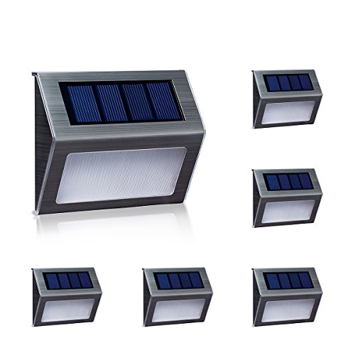 [Warm Light] Solar Lights for steps decks pathway yard stairs fences, LED lamp, outdoor waterproof, 6 Pack