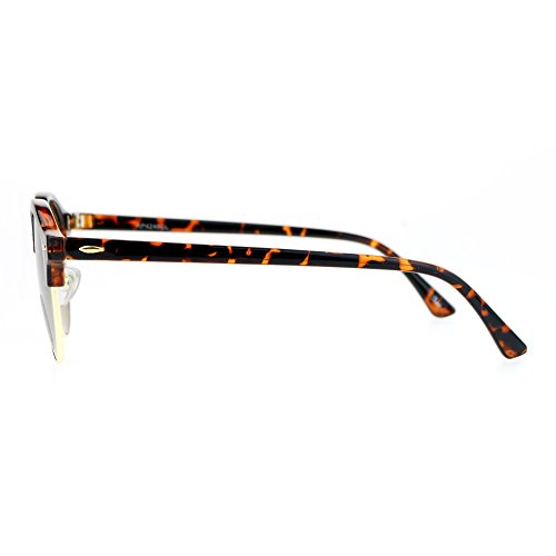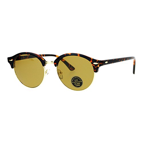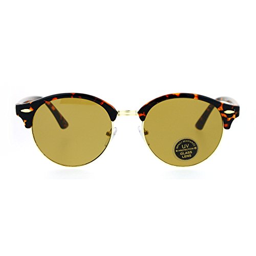SA106 Womens Glass Lens Boyfriend Fit Round Half Horn Rim Sunglasses