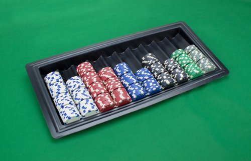 Each poker tray has ten rows that hold up to 50 chips each, or 500 chips total. This tray is made of thick and durable ABS Plastic. This item measures approximately 18.5 inches long and 9 inches wide.