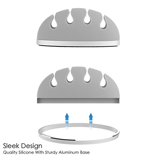 【Environment Friendly Silicone + Sand Blasting Aluminum Base】: This top quality cable organizer is made of highest quality silicone of great tenacity and flexibility, aluminum base bottom makes it more endurable and long lasting.