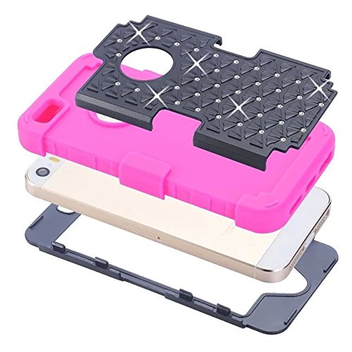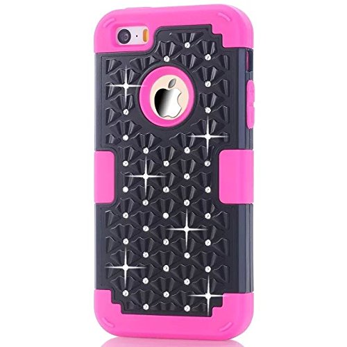 - Feature : Compatible with Apple iPhone SE, 5S, 5 / 3 in 1 Bling Rhinestone Diamond Design Durable Hybrid PC + Silicone Cover / Protects your iphone against any scratch, bump, finger marks, and dirt / Quick and easy access to ports and buttons. Innovative new button design ensures an extremely easy to press button experience for your iPhone SE / Precise cut and design allow easy access to all ports, sensors, speakers, cameras