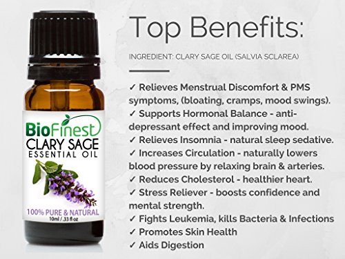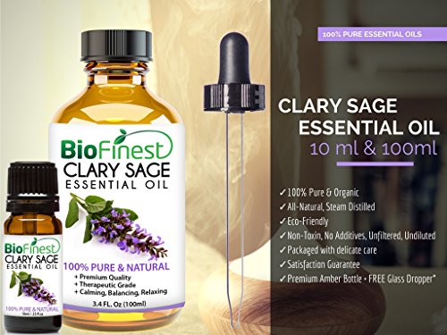 BioFinest Clary Sage Oil - 100% Pure Clary Sage Essential Oil - Premium Organic - Therapeutic Grade - For Aromatherapy - Boost Confidence -Improve...