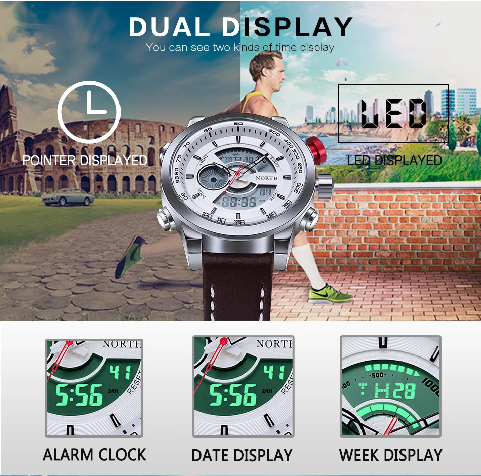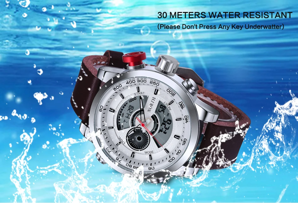Feature:Auto Date,Complete Calendar,Water Resistant,Back Light,LED display,Swim,Alarm