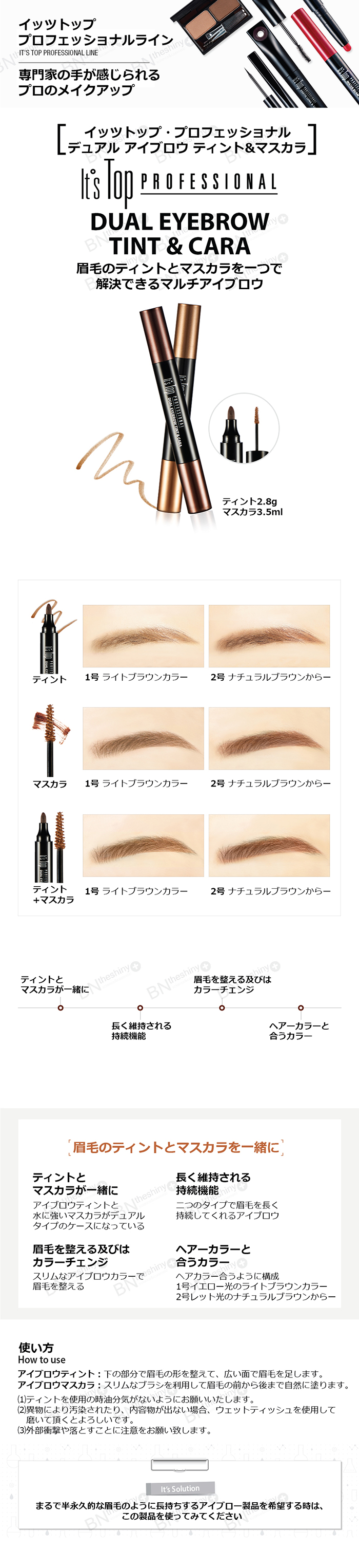 商品名 イッツスキン デュアル アイブロウ ティント マスカラ It's Skin It`s Top PROFESSIONAL DUAL EYEBROW TINT and CARA