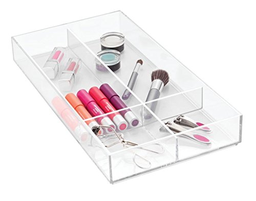 Comes with four stackable cosmetic drawer organizers that keep bathroom clutter under control by keeping cosmetics and accessories in one place