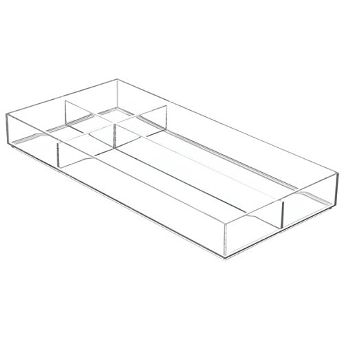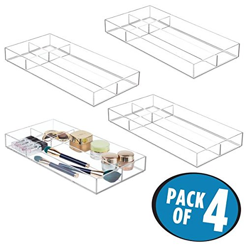 mDesign Bathroom Stackable Drawer Organizer for Cosmetics, Makeup Brushes, Makeup - Pack of 4, 8" x 16" x 2", Clear