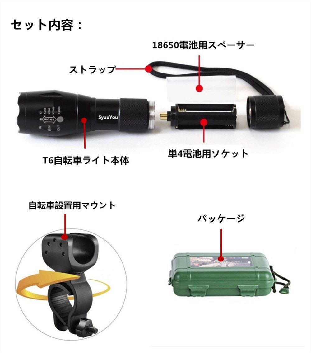 SyuuYou CREE's Ultrahigh Brightness LED Using XML-T6 Super Light Light Bicycle Light with Light Holder.