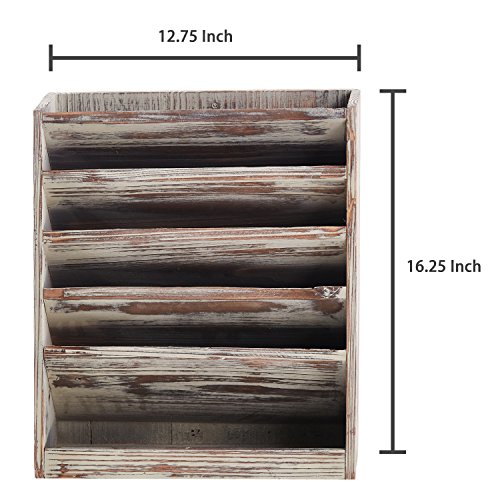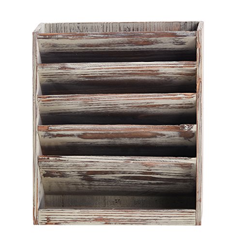 5 Slot Rustic Torched Wood Wall Mounted Magazine and Document Filing Organizer Rack