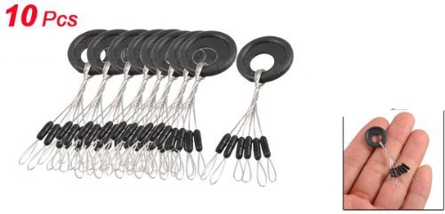 -. Feature : Product Name : Fishing Bobber Stopper;Size : L / Design : 6 in 1;Material : Plastic, Metal, Rubber;Weight : 10g; / Length : 51 mm / 2";Ring Size : 15 x 2 mm / 0.59" x 0.08" (D*T) / Each Stopper Size : 5 x 3 mm / 0.2" x 0.12" (L*D);Main Color : Black, Silver Tone / Package Content: 10 x Fishing Bobber Stoppers