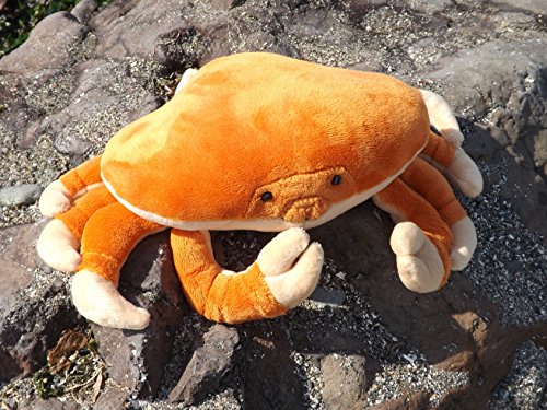 [Description] Quality plush toy crab with lots of detail. Realistic orangish brown shell color with beige underneath. Has detailed stitching underneath and at its mouth. Safe for small children. Machine washable.