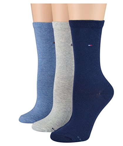 Tommy Hilfiger Women's 3 Pair Basic Crew, Black, One Size