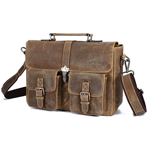 -. Title : BAIGIO Vintage Leather Briefcase Antique Messenger Bag 13" Laptop Shoulder Handbag (Brown)