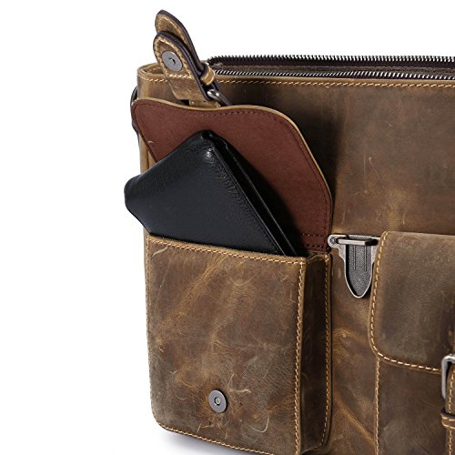 -. Feature : MADE of 100% Top Grain Cowhide Leather (Bendable& Thick& Durable). Canvas Lining / DIMENSIONS: 13.6"(L)* 10"(H)* 4.3"(W); Fits 13 Inch Laptop / [CLASSIC STRUCTURE]: 1 Main Compartment with Zipper, 1 Inner Cellphone Pocket, 1 Inner Key Pocket, 1 Inner Zipper Pocket, 1 Laptop Divider Pocket, 1 Back Zipper Pocket, 2 Front Pockets with Snap Flip Cover. Adjustable Shoulder Strap / [FOR DAILY USE]: Stylish Design for Business Use. Can Use AS a Briefcase or Backpack in Different Occasions. Business, Office, Meeting,Shopping, Travelling,School, Office, Holiday & More. / [Amazing GIFT IDEA]: This Briefcase is the latest Fashion Design of 2017. With Its Chic Design & High End Quality, It Will Be The Perfect Gift Choice for You