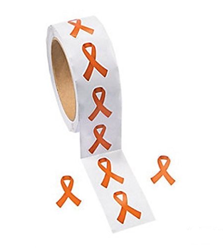 500 Orange Awareness Ribbon Stickers (1 Roll) KIDNEY, LEUKEMIA, MULTIPLE SCLEROSIS