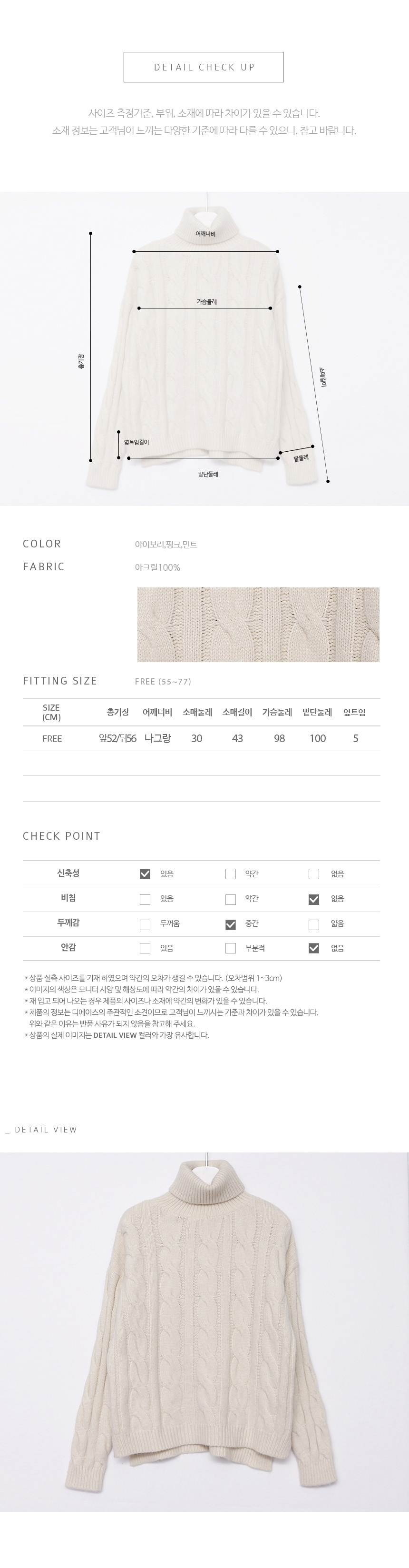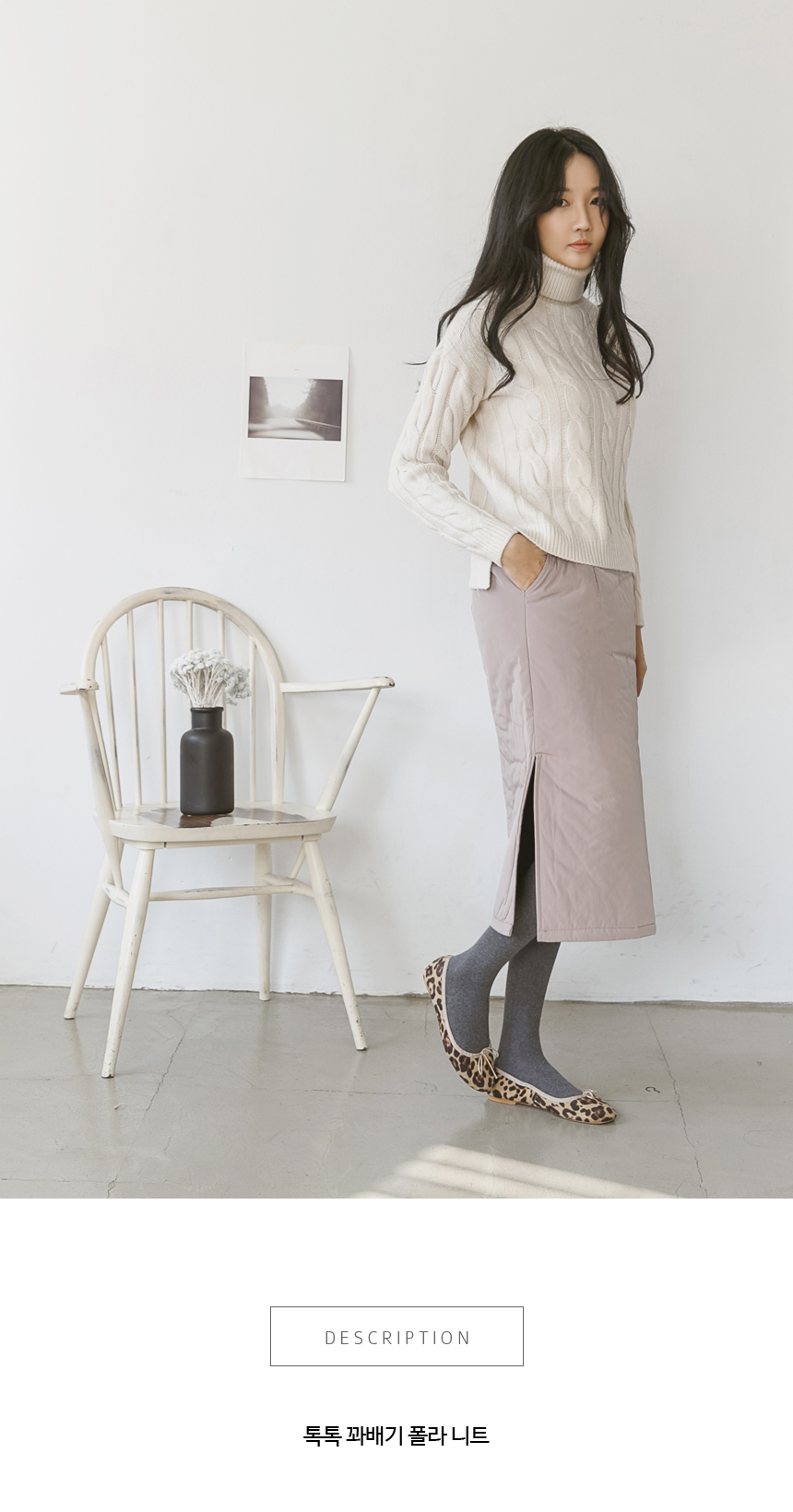 얇은 실의 촘촘한 짜임으로 톡톡한 두께감이 따듯한 꽈배기 폴라 니트랍니다^^ 소프트한 색감이 눈에 띄는 아이템으로 제법 두께감이 느껴져 따듯하고 부피감이 크지 않아 원피스 이너로까지 활용하기 좋아요! 산뜻한 길이감으로 스커트, 팬츠 등 다양하게 코디하기 좋답니다^^ 색상은 아이보리, 핑크, 민트 사이즈는 FREE 55~66반 ▼ 관련상품 : 데이 밍크기모 일자 팬츠마라 패딩 트임 스커트애니 울터치 롱원피스