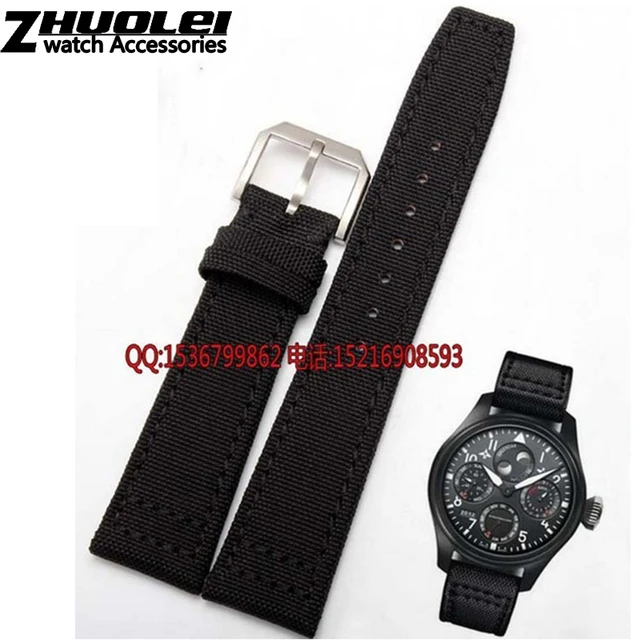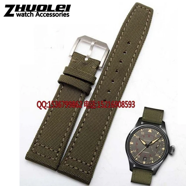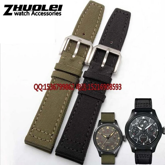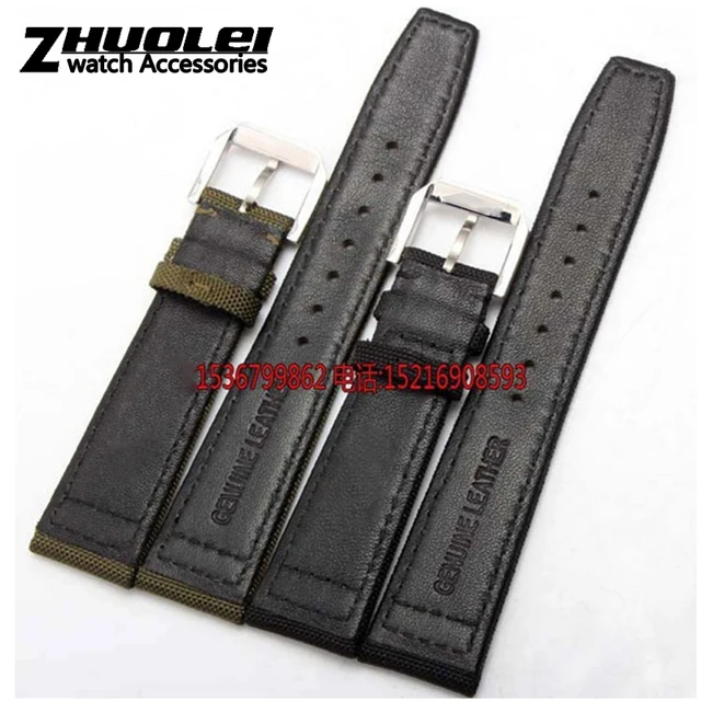 | [해외]나일론 내구성 + 정품 가죽 바닥 남성 시계 줄, 20 미리메터 21 미리메터 22 미리메터, 블랙 & 그린 & 카키, 시계 밴드 스트랩 벨트, 스틸 실버 버클 |