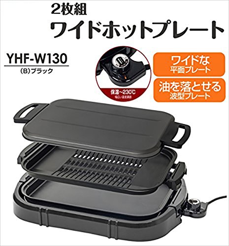 원본상품명: 山善(YAMAZEN) ホットプレ?ト ワイド 1300W (平面波型プレ?ト付) ブラック YHF-W130(B)