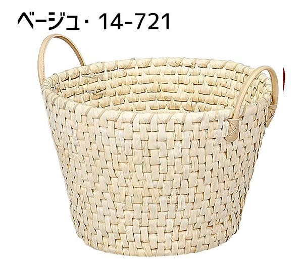 シンプルな作りの持ち手付き収納バスケットです。落ち着いたベージュベースのバスケットは、どんなお部屋にも似合いそう♪