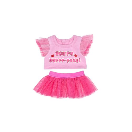 -. Feature : Build a Bear You're Purrr-fect Pink 2 pc. Tee Shirt Ruffle Skirt Mini Teddy Outfit / Mini 7 in. Stuffed Plush Toy Animals Clothes / The pawfect outfit for your mini stuffed animal / This adorable outfit includes a pink shirt with ruffle sleeves and a You're Purrr-fect graphic and a pink ruffle skirt / Your favorite mini pal will look pawsome in this fun outfit - Ages 3+