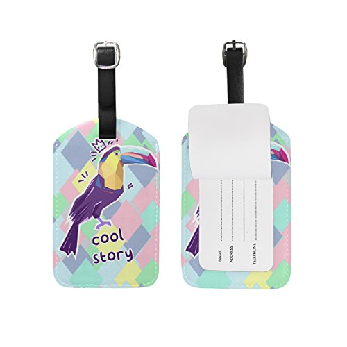 (YZGO)/Accessories/Luggage, Bags Travel/DIRECT FROM USA/YZGO Pastel Abstract Tropical Bird Toucan PU Leather Luggage Tags Bag Label Tag Travel Accessor...