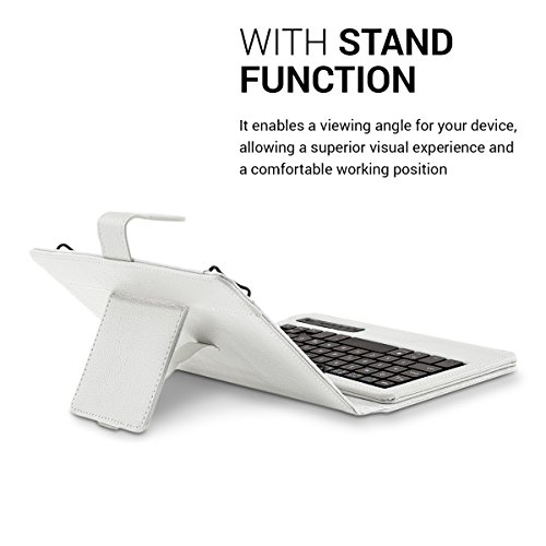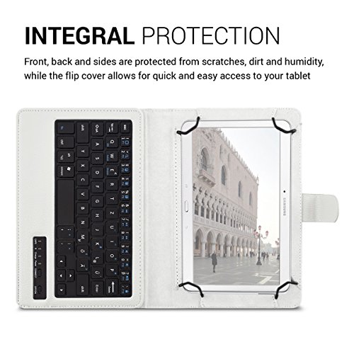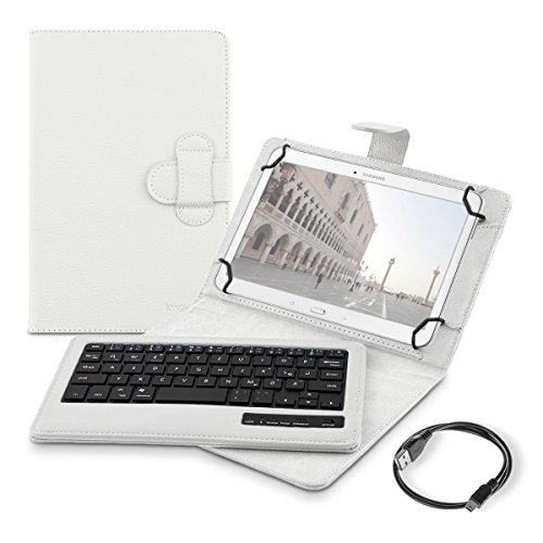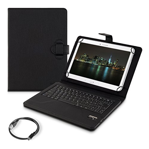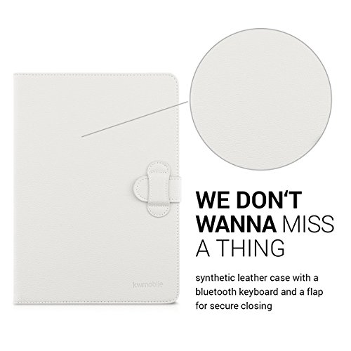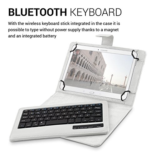 -. Feature : BLUETOOTH KEYBOARD INCLUDED: Working with your tablet with the included QWERTZ bluetooth keyboard becomes more comfortable than ever. The wireless keyboard is magnetically held in the case and can easily be removed. An included battery allows writing without power supply. (Please note: this keyboard does not use the American QWERTY format. The placement and function of certain keys may differ.). / WHEN FUNCTIONALITY MEETS ELEGANCE: With the kwmobile protective case for your 9,7-10,1" Tablet you can cover your tablet with resistant imitation leather and give it a classy look. Thanks to the intelligent design it is easy to make the tablet stand in the case so that it will be even more comfortable for you to watch movies or work with the integrated bluethooth keyboard. Inner dimensions: approx. 27 x 18,5 cm Fits all devices from 27,0x18,5 to 24,0x17,0 cm. / Compatible for example, with: Acer Iconia: One 10 (B3-A20), Tab 10 (A3-A20), Tab 10 (A3-A30), Tab 10 (A3-A40) // Apple iPad: Pro 10,5" // Asus MeMo Pad: 10 ME103K, FHD 10 ME302C // Asus Transformer Book: T100 Chi // Asus ZenPad: 10 Z300C / Z300CL / Z300CG // Asus Zenpad: 10 Z301ML / Z301MFL // Chuwi: Hi10 Pro // Iconia One: 10 (B3-A30), 10 (B3-A40) // Lenovo: Yoga Book // Lenovo IdeaTab: A10-70 (A7600) // Lenovo Yoga: Tablet 3-10 // LG G: Pad II 10.1 / Samsung Galaxy: Note 10.1 N8000 / N8010 // Samsung Galaxy Tab: 2 10.1 P5100 / P5110 // Sony Xperia Tablet: Z, Z4