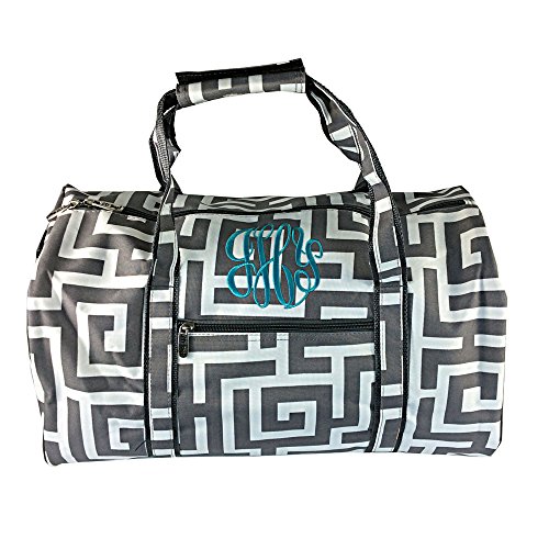 -. Title : Duffle Bag, Overnight Duffle Bridesmaid Gift 17.5" Gray Geo Duffle Personalized