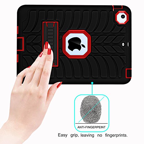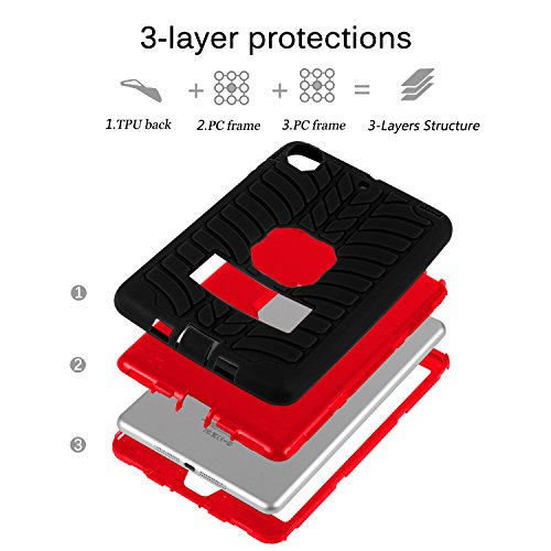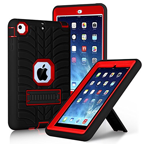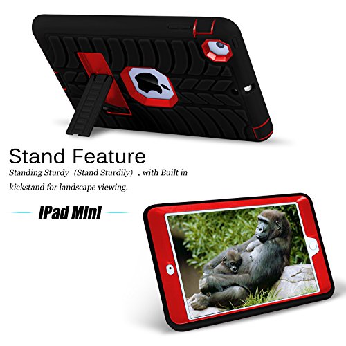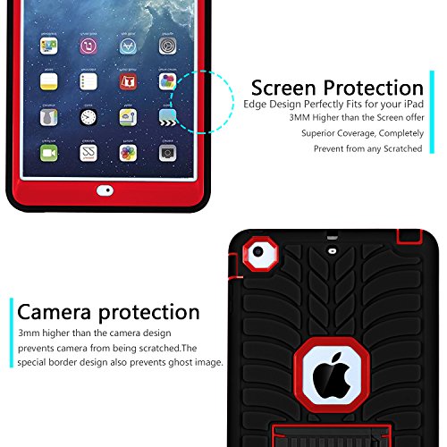 iPad Mini Case,iPad Mini 2 Case,iPad Mini 3 Case,iPad mini Retina Case, Elegant Choise Heavy Duty Three Layer Armor Defender Protective Case Cover with Kickstand for iPad Mini 1/2/3 (Red+Black)