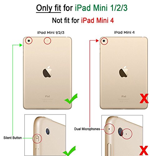 iPad Mini case,iPad Mini 2 Case,iPad Mini 3 Case. Only compatible with Apple iPad Mini 1/2/3 (7.9 inch). Will NOT fit for iPad Mini 4 2015 New released, Not fit iPad Air,iPad Pro or Samsung Tablet.