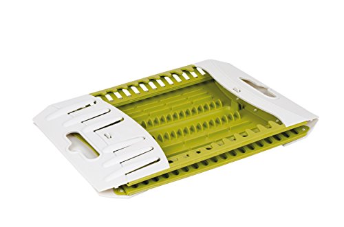 Space saving dish rack folds flat for storage, snaps open to use. large capacity, built-in drip tray, holders for cutlery and glasses. perfect for car camping, boats, cabins and home.