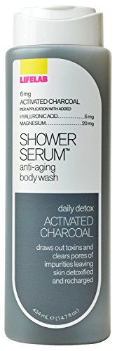 LifeLab Daily Detox Activated Charcoal Anti-Aging Body Wash Shower Serum for Removing Skin Impurities and Clearing Pores, 14.7 Fl Oz