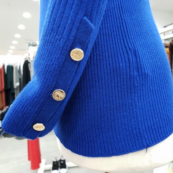 커프스 버튼 슬림라인의 골지니트촉감이좋은소재로, 이너로 받쳐입기좋은 데일리니트다양한컬러구성블루,체리핑크,그린,그레이,레드
