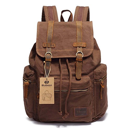 -. Title : BLUBOON(TM) Vintage Men Casual Canvas Leather Backpack Rucksack Bookbag Satchel Hiking Bag (coffee)