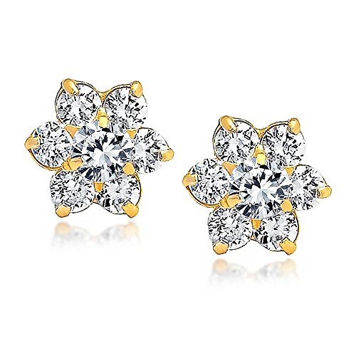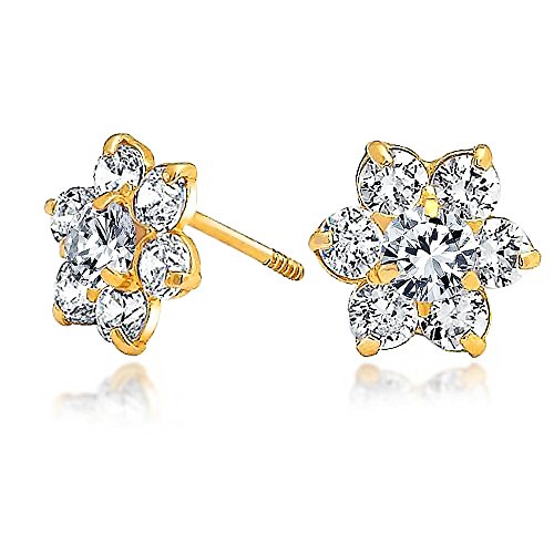 Bling Jewelry Kids Safety Screw back CZ Flower Stud Earrings 14k Gold