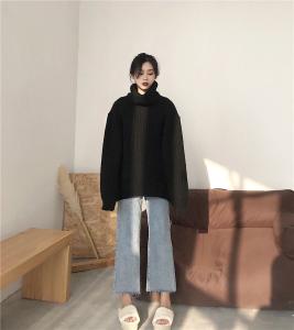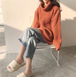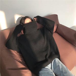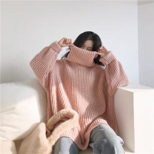 リブニット ハイネック ニットトップス セーター ニットプルオーバー ゆったり オーバーサイズ 秋冬 プチプラセール