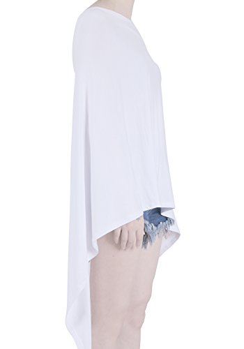 Binding : Apparel Product Description Drapes beautifully on the body .You can wear these to work, church, etc...They are so beautiful and dressy with jeans or dress pants either one. It is extremely light weight, but if you want to just cover up and dress something up quick. This is perfect.That a nice necklace and earrings if your on the go is easy and great.Modeway women's modal long asymmetric cape caftan wrap poncho tunic shirt tops have versatile ues ,great for traveling or can be use as nursing cover that provides you with full coverage,so you can breastfeed your baby anywhere and feel like you are in your own bedroom.A wardrobe staple you definitely need to have! Size Table: Medium Shoulder width:13.8" Maximum back length :25.6" Large Shoulder width:14.6" Maximum back length :26.4" XLShoulder width:15.4" Maximum back length :27.2" 0