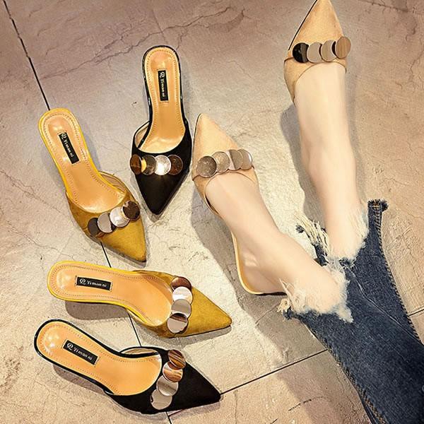 | 変形ヒール スエード サークルプレート ミュール サンダル 黒 ブラック 6cmヒール S/M/L 【秋 サンダル レディース 女性 靴 秋冬 トレンド 黒 ブラック S M L 22.5cm 23.5cm 24.5cm スエード ミュール 歩きやすい】 | |