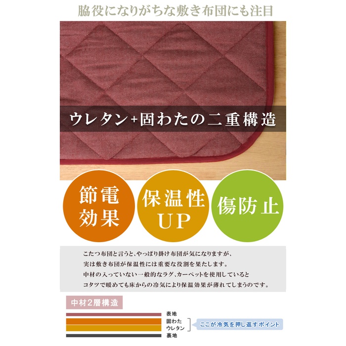 깔아 이불의 조성도「우레탄」와「폴리 에스테틱《루》#다」의 중재2 층구조 (이므로)그래서 바닥부감도 경감하여 쾌적한 난로 라이프를 보낼 수 있습니다.