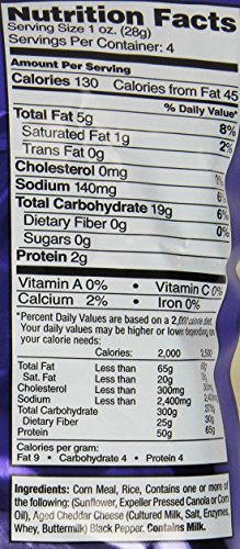 -. Feature : Aged white cheddar is made from puffed rice and corn, blended with real aged white cheddar cheese and baked perfectly to pirate standards / No artificial colors, flavors, or ingredients / Gluten free and 0g trans fat per serving / A great tasting, healthy snack option for the whole family / Get the whole snacking goodness without the guilt