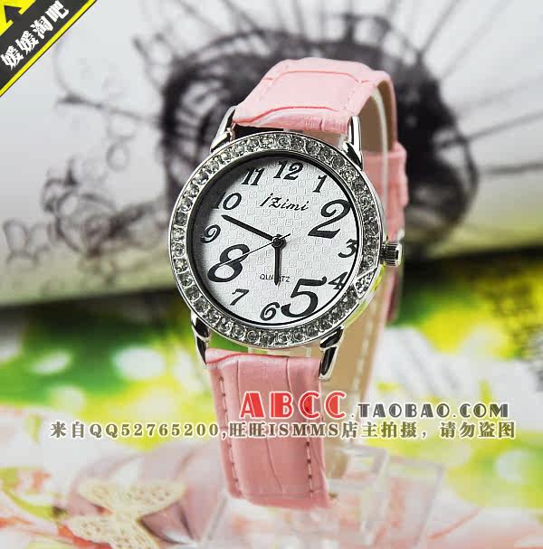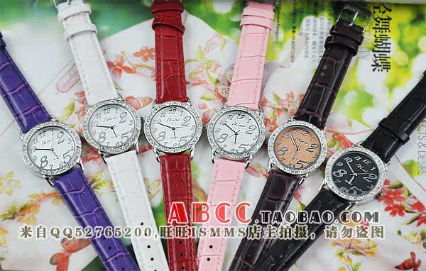 材料:优质合金表壳 皮革表带 香港石英机芯 捷克产人造水钻