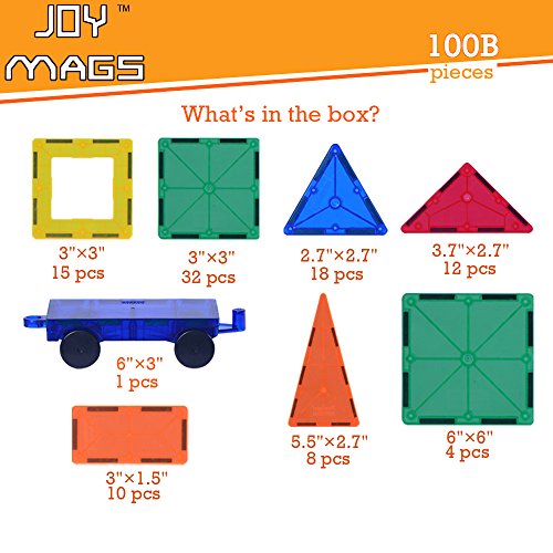 -. Title : Joy Mags Magnetic Tiles Clear Building Blocks Construction Stacking Toys Set (100 Pieces)