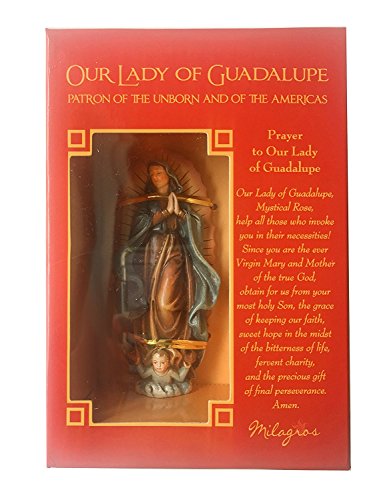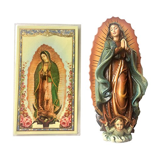 4" Our Lady of Guadalupe Virgin Mary Statue with Laminated Prayer Card Included/ Estatuilla de la Vigen de Guadalupe (4"H) - Incluye Trajeta de Oracion