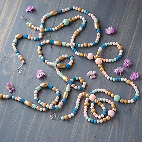 Glitterville La La Pastel 6 Foot Wood Beaded Christmas Garland Assorted Set of 2