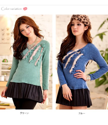 -. Title : (ゴールドジャパン)Goldjapan ワンピース ドッキングワンピース ニット フレアー ミニスカート