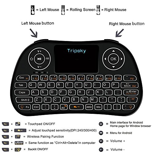 Perfect combo: Wireless Mini QWERTY Keyboard + Touchpad which supports multi-finger functions, A single finger click as left mouse function, two-finger click as the right mouse function, double finger drag as the rolling screen